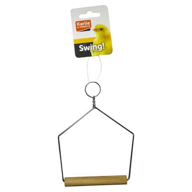 Trapezschaukel für Vögel aus Metall mit Holzsitzstange.