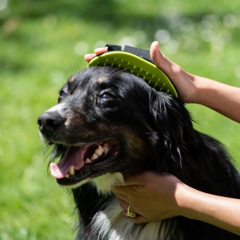 Mit dem Waschhandschuh lässt sich Shampoo perfekt im Hundefell verteilen. Durch die Silikonnoppen wird es dabei nicht nur oberflächlich aufgetragen, sondern mühelos auch tiefer im Fell verteilt. Zudem wird die Haut des Hundes gleichzeitig massiert und so die Durchblutung gefördert.